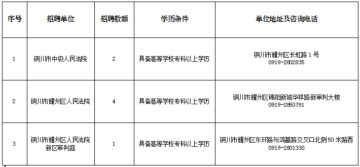 (七)有關(guān)招聘信息將在“銅川市中級人民法院 ”官網(wǎng)及微信公眾號上公布,請考生密切留意并及時查看,如因考生未及時查看等原因,導(dǎo)致的相應(yīng)后果由本人承擔(dān)。
